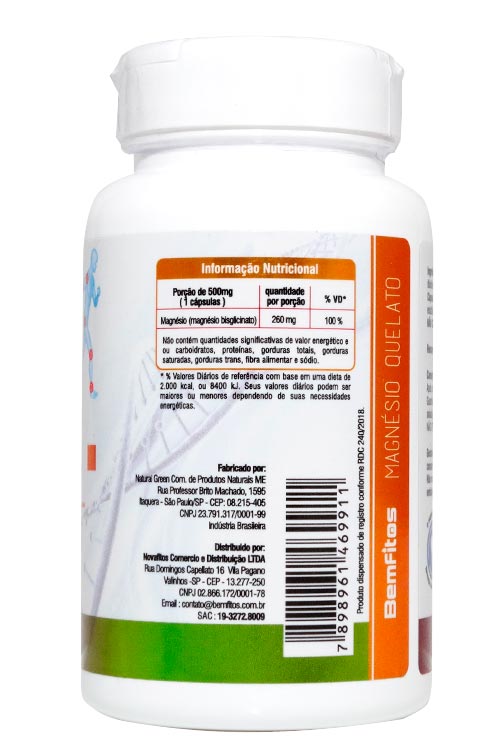 Ingredientes: Magnésio quelato, amido de milho, antiumectante dióxido de silício.